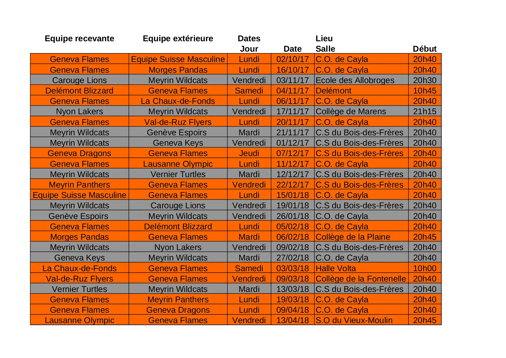 Championnat Meyrin Wildcats 2017-2018 (XLS)