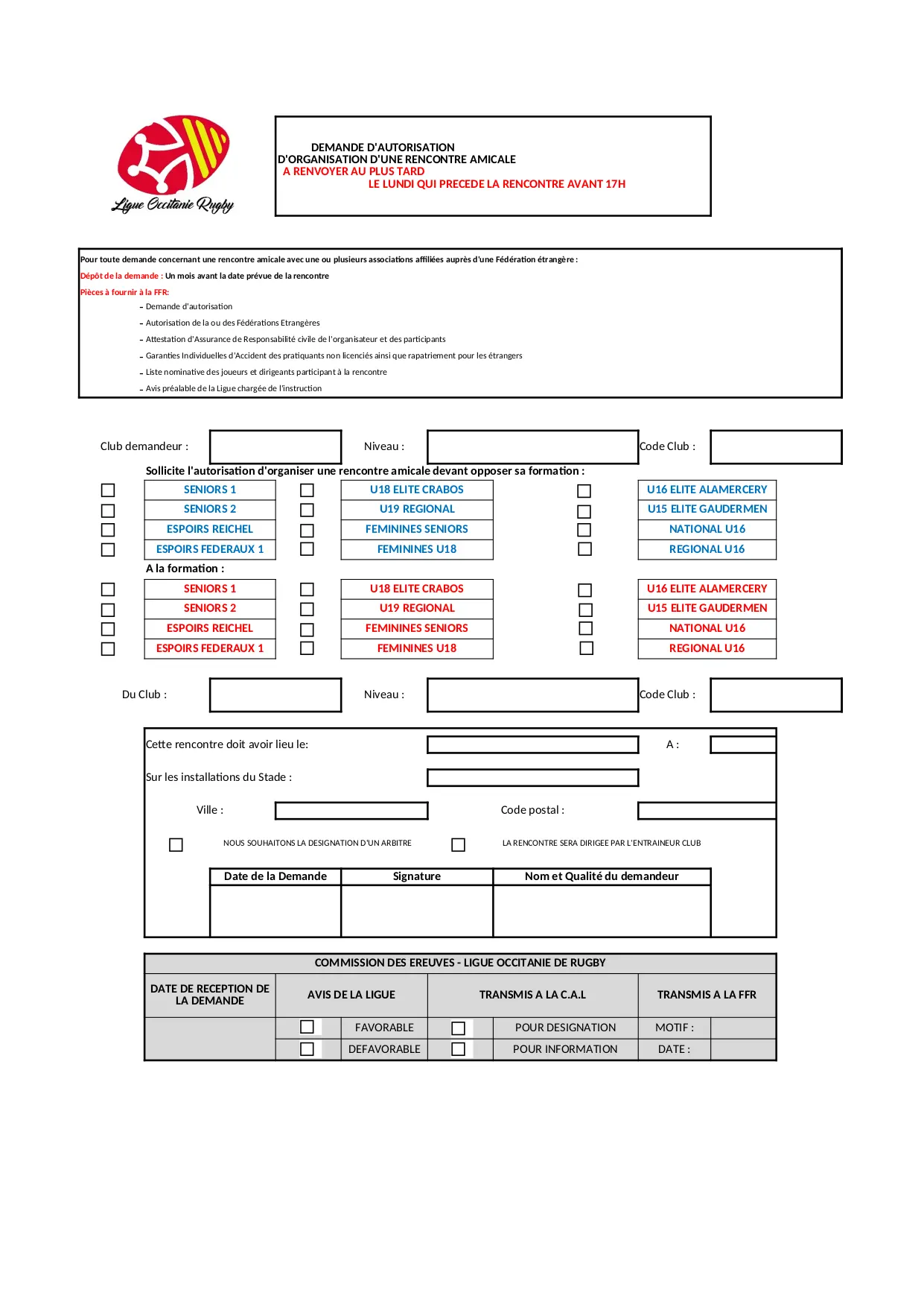 ligue demandeur espoirs feminines autorisation demande amicale regional alamercery rencontre seniors reichel elite niveau formation