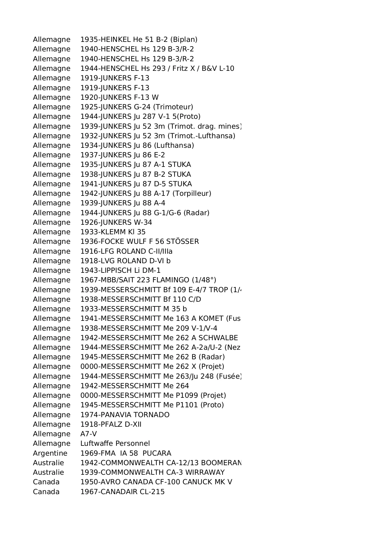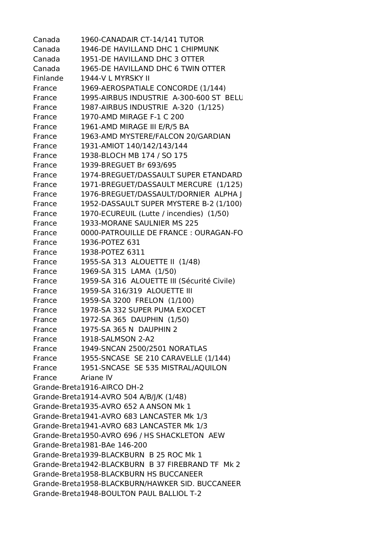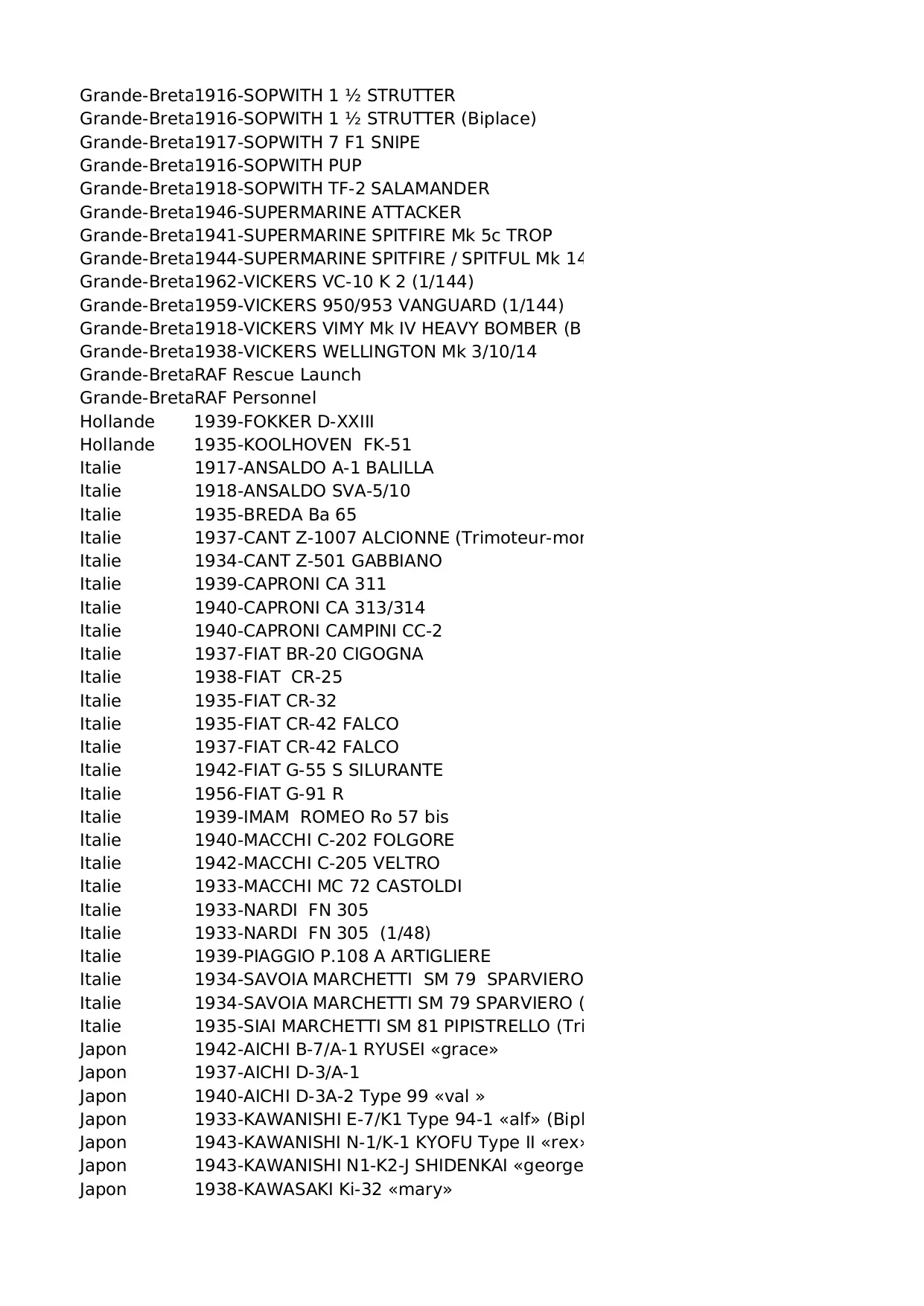 hasegawa italeri heller bretagne parfait scalemates allemagne matchbox biplans monomoteur bimoteurs revell douglas grande airfix