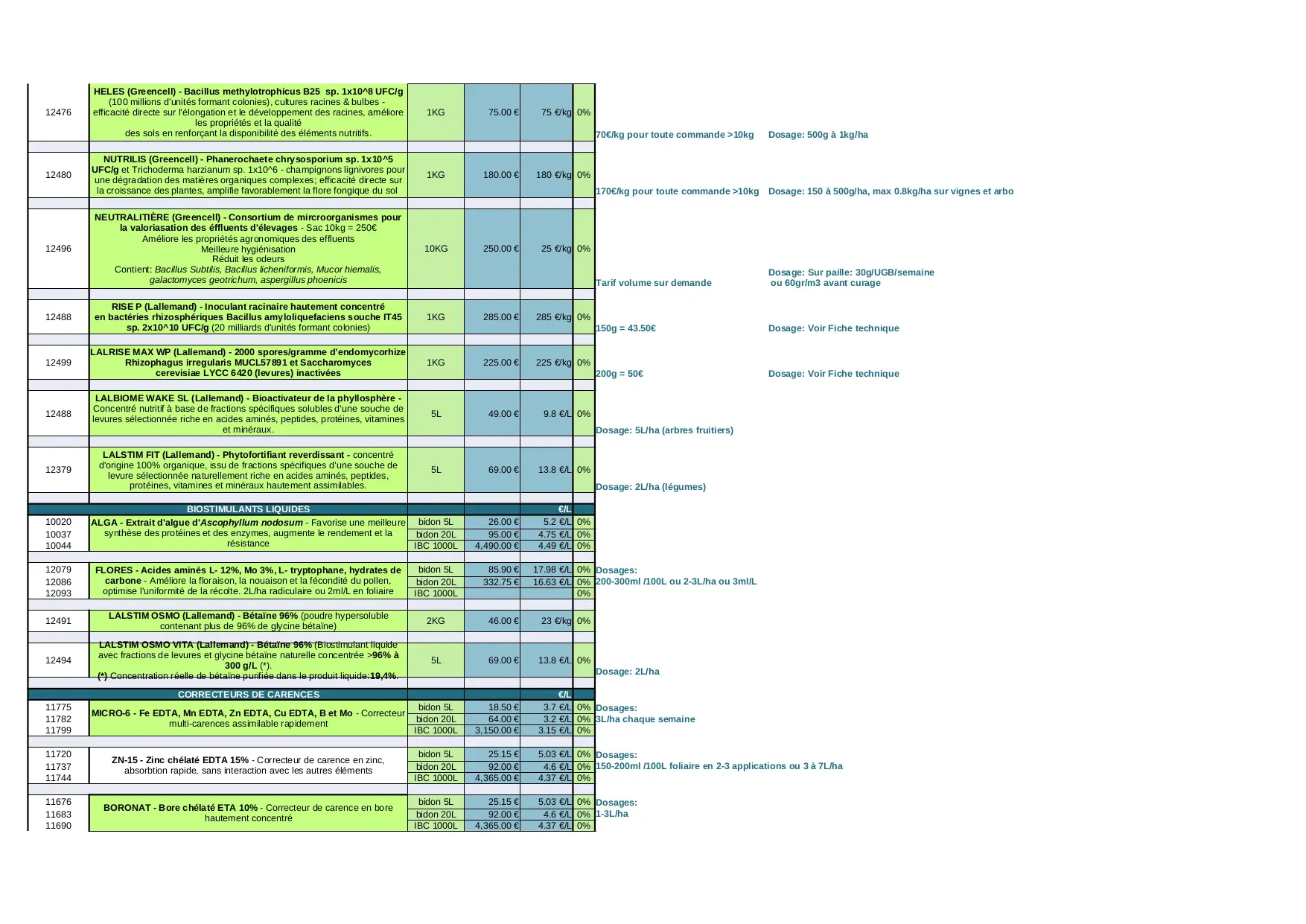 dosage 1000l formant toute commande bacillus correcteur colonies carence lallemand bidon unites acides dosages amines